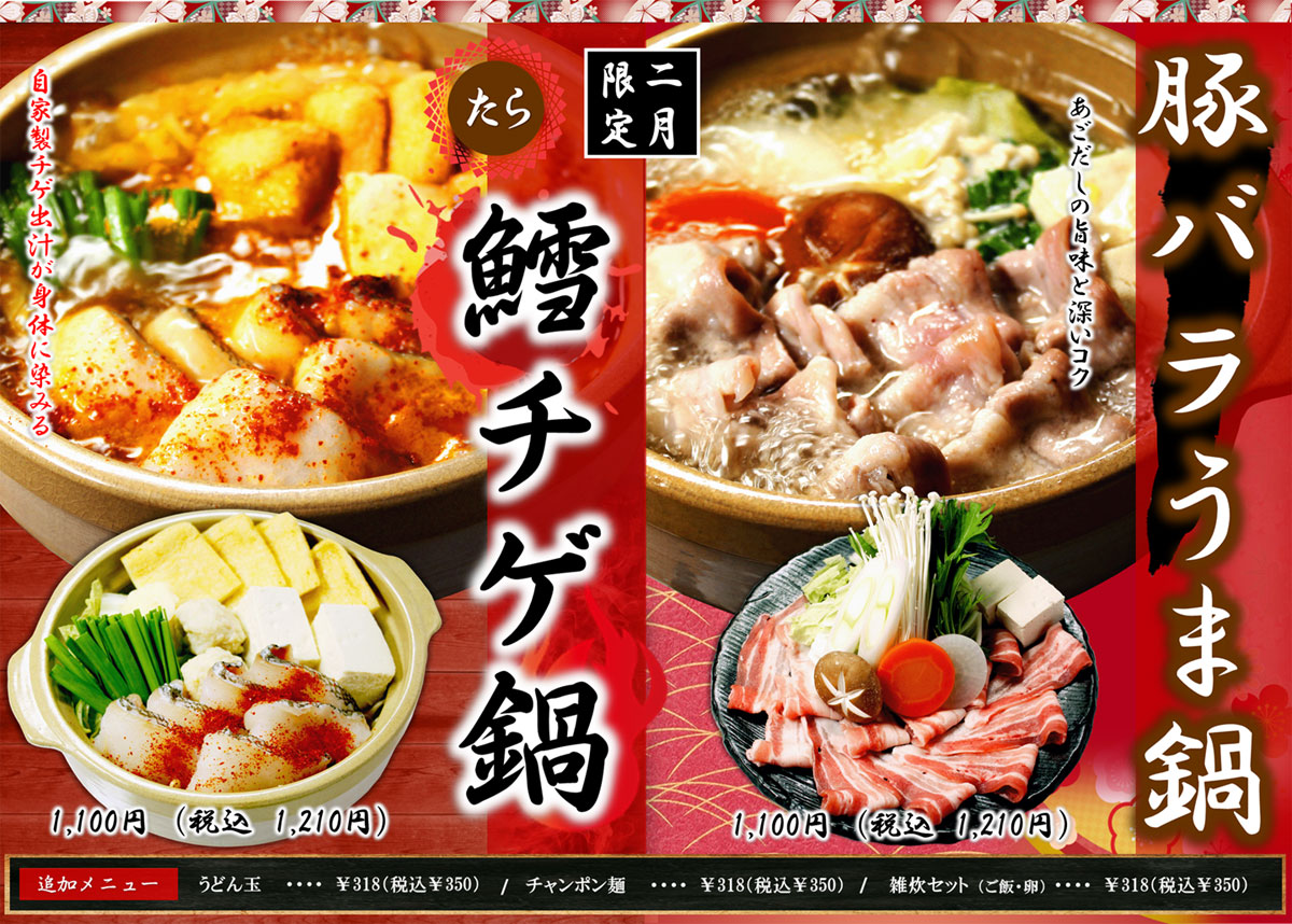 あったか鍋フェア「鱈チゲ鍋」&「豚バラ旨鍋」