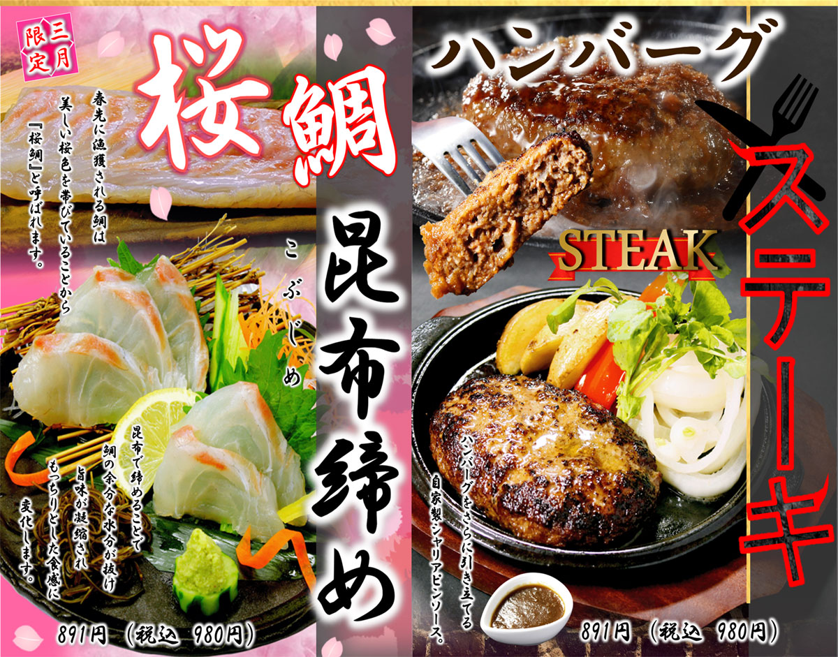 【3月限定】鉄板ハンバーグステーキ&鯛の昆布締め